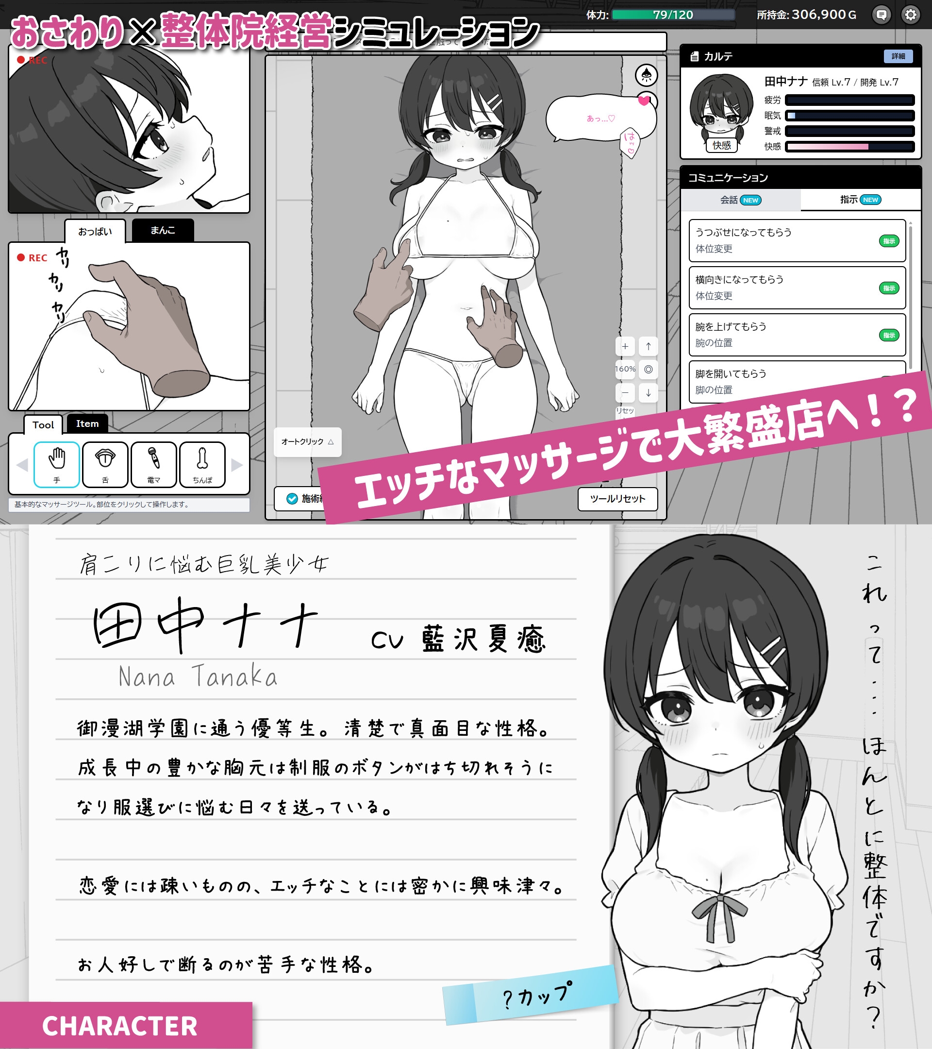ナナちゃん本人は「整体」だと思っているから無自覚なんだけど、開発が進むと「最近、身体がおかしいの……」なんてポロッと零しちゃうの。