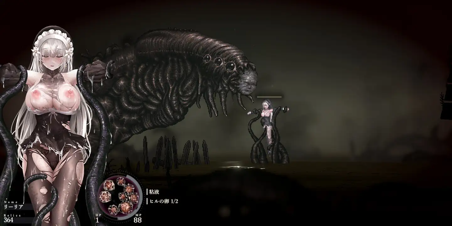 ここからが本番だよ!このゲームの何がヤバいって、敗北して化け物に蹂躙された後も「その姿のまま」冒険が続くところなんだよね❤️